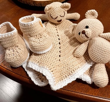 Descubre nuestros exclusivos regalos de crochet, hechos con amor y materiales naturales para ti.